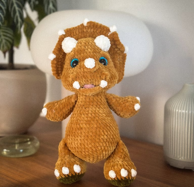 Un petit dinosaure au grand cœur, prêt à protéger sa tribu avec douceur et courage.