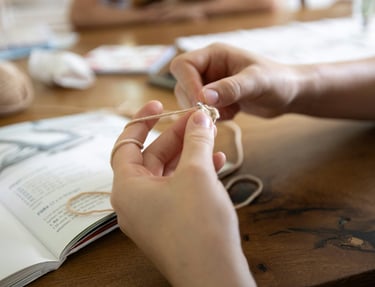 Aujourd’hui, nous continuons à imaginer de nouvelles collections, à explorer des formes, des textures, et à réaliser vos commandes personnalisées — parce qu’il n’y a rien de plus satisfaisant que de voir une idée prendre vie sous nos crochets.